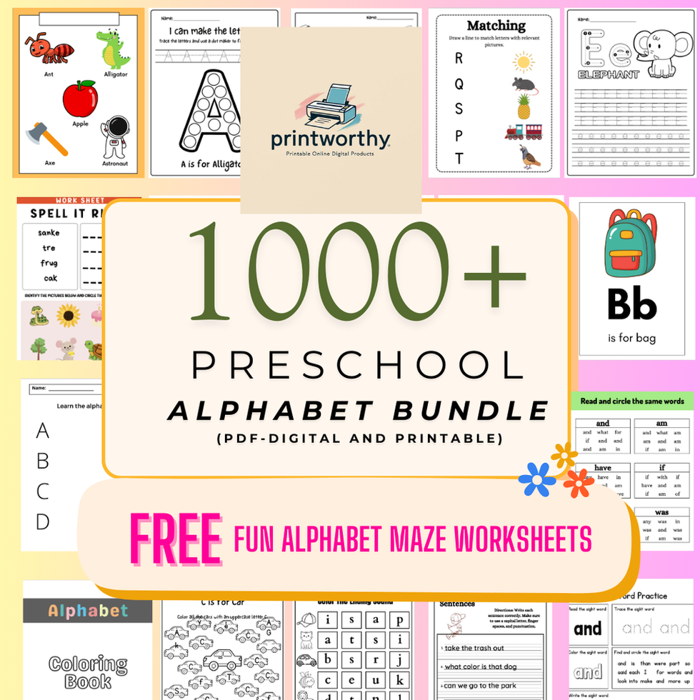 Perfect to keep your little one occupied with both 'Off-Screen' and 'On-Screen' Activities, this Mega 1000+ Alphabet Bundle is a wonderful way to make young minds learn and have fun at the same time. Consisting of activities involving
